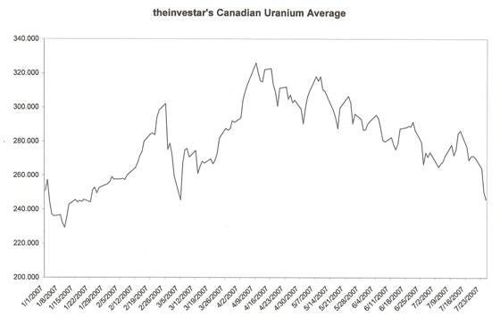 uranium stocks had a good chance of going lower by 10% to around 245 for -theinvestar's