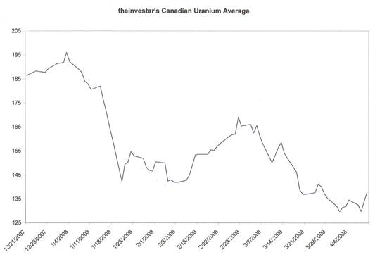 Theinvestar's Canadian Uranium Average has fallen to lows